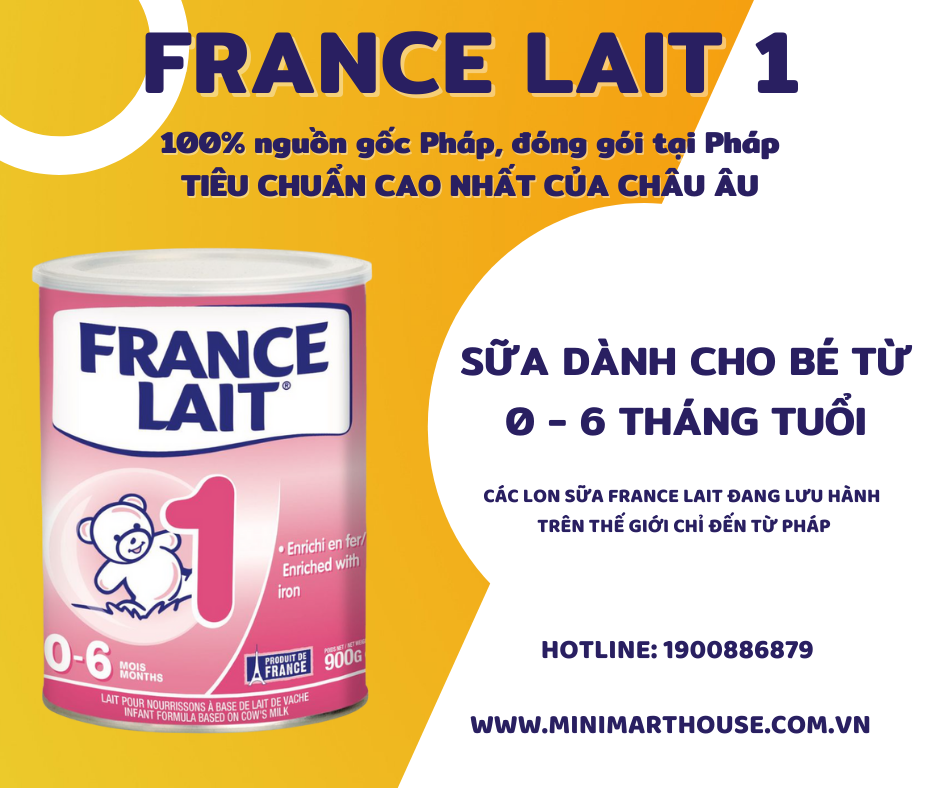France Lait là thương hiệu sữa nhập khẩu từ Pháp, đáp ứng mọi tiêu chuẩn chất lượng gắt gao của thị trường châu Âu nên đảm bảo an toàn cho sức khỏe trẻ em. Sản phẩm được nghiên cứu kỹ càng sao cho phù hợp với mọi giai đoạn phát triển của trẻ giúp cho bé yêu nhà bạn phát triển toàn diện cả về thể chất lẫn trí não. Dành cho bé trong giai đoạn 0 - 6 tháng, thương hiệu mang đến dòng sữa France Lait số 1 cung cấp các hàm lượng dưỡng chất cần thiết để bé phát triển hệ xương chắc khỏe, trí não thông minh, hệ miễn dịch cũng như hệ tiêu hóa khỏe mạnh.